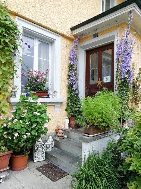 Wir haben zwei liebenswerte Katzen, die aber nur im Garten und bei uns im Erdgeschoss (Privatbereich) ein- und ausgehen. Im Interesse allfälliger Tierhaar-Allergiker/innen sind im B&B-Bereich keine Tiere zugelassen.
